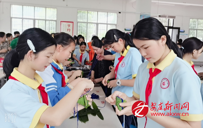 活動現(xiàn)場,老師與家長手把手向?qū)W生傳授包粽技巧,從粽葉的折疊角度、糯米的填充分量,到捆扎成形的精細(xì)手法,學(xué)生們圍坐桌前專注練習(xí)。折葉、填米、捆扎……轉(zhuǎn)眼間一個棱角分明的粽子便成型,現(xiàn)場粽葉翻飛、笑語不斷。活動中,老師們還穿插講解端午習(xí)俗,當(dāng)熱氣騰騰的粽子出鍋時,孩子們捧著軟糯香甜的粽子細(xì)細(xì)品嘗,在味蕾的享受中感悟傳統(tǒng)文化的深厚底蘊(yùn)。