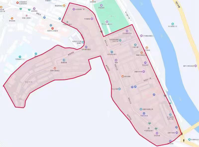 二、城關鎮(zhèn)區(qū)域:金都酒店--中醫(yī)院--商貿(mào)大街1巷東口--商貿(mào)大街4巷東口--祝爾慷廣場隔壁家屬樓(祝爾慷廣場南面)--商貿(mào)大街4巷西口--商貿(mào)大街1巷西口--南方商城--汽車站--金都酒店所覆蓋區(qū)域;城關鎮(zhèn)財政所--中央都會--外貿(mào)家屬樓--高家溝(馨安花園小區(qū))--黃虎西路全段(含衛(wèi)校路全段);麗都口--自強廣場--黨家壩加油站以北覆蓋區(qū)域繼續(xù)落實管控(詳見附圖),其他區(qū)域有序進行正常生產(chǎn)生活,落實常態(tài)化疫情防控措施。