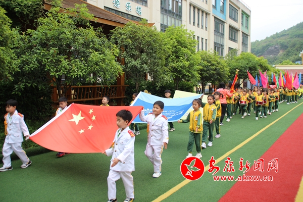 伴隨著雄壯嘹亮的運動員進行曲,國旗方隊旗手們托舉著鮮艷的五星紅旗健步走來,園旗方隊、彩旗方隊緊隨其后,消防員、廚師、警察......孩子們化身為各行各業(yè)勞動者形象,他們踏著有力的步伐,喊著響亮的口號,個個整裝待發(fā),“干”勁十足。整齊的步伐、燦爛的笑容盡情顯現(xiàn)著孩子們的熱情與活力,成為開幕式上最靚麗的風景線。