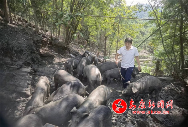 仲夏時節(jié),旬陽市麻坪鎮(zhèn)老莊溝村,大山里清靜涼爽。隨著一陣音樂響起,樹林間瞬間躁動起來,一群黑豬哼哧哼哧地鉆了出來。“一放音樂,它們就知道飯點兒到了。”“豬館兒”王興隆說,“喂飽了就回去拱個坑睡覺,這群黑豬從小就生活在樹林里,我對這種利用自然資源的純天然養(yǎng)殖方式是很有信心的。”