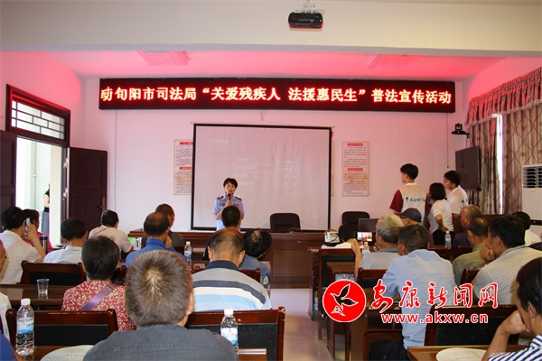 8月13日早上,在旬陽市甘溪鎮(zhèn)甘溪社區(qū)活動室里,旬陽市司法局、市婦聯(lián)、市殘聯(lián)工作人員以“嘮家常”的方式你一言我一語地向臺下的群眾宣講著惠殘政策、助殘法律法規(guī)等知識。不同以往,本次宣講借助市殘聯(lián)舉辦的殘疾人技能培訓(xùn)契機(jī),專門針對殘疾人朋友送上了“法治大餐”。