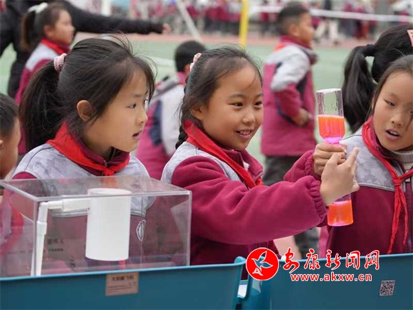 在各個科學實驗項目前,同學們駐足停留,認真觀察、反復操作,沉浸在知識的海洋與科技的奧秘中,操場上不時傳來陣陣驚嘆聲。“我最感興趣的是機器人,通過手柄遙控能讓機器人模仿奔跑跳躍,跟我們打招呼,真是太神奇了,我以后要更加努力地學習科學知識,探索更多的未知領域。”五年級一學生激動地說。
