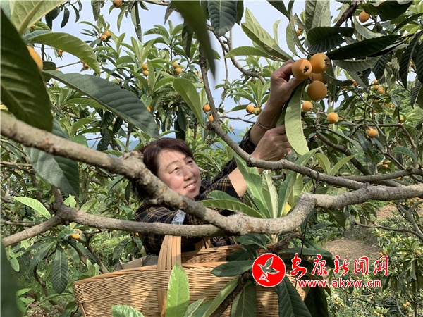 本網(wǎng)訊(記者 唐正飛)立夏過后,藍(lán)天白云下,一湖碧水倒映著湖畔的白墻黛瓦、花紅柳綠,一只小船劃過湖面,一層層碧波擴(kuò)散開來,一顆顆金果隨波而動(dòng),點(diǎn)綴著瀛湖的碧水青山。經(jīng)過村民多年的栽培,漢濱區(qū)瀛湖鎮(zhèn)清泉枇杷成為了此時(shí)本地應(yīng)季水果的代名詞,萬綠叢中的金果讓村民笑臉更加燦爛。
