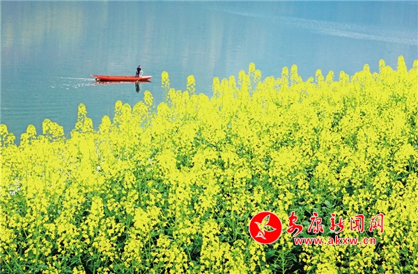 瀛湖的春天,立春很久才姍姍而來(lái)。春風(fēng)拂過(guò)山間林木,樹木爆芽吐綠。起初是一樹一樹的鵝黃,帶著幾分詩(shī)意。沒幾天,便是翡翠般的新綠,煥發(fā)著勃勃的生機(jī)。藍(lán)天麗日下,一池湖水碧波萬(wàn)頃,如一面巨大的鏡子鋪展在天地間。頭頂?shù)乃{(lán)天白云,四周的紅花綠樹,全都靜臥湖底。魚兒開始產(chǎn)子,孕育后代,來(lái)來(lái)往往的游船載來(lái)四面八方的游客,火了周邊的農(nóng)家樂,鼓了村民的腰包。