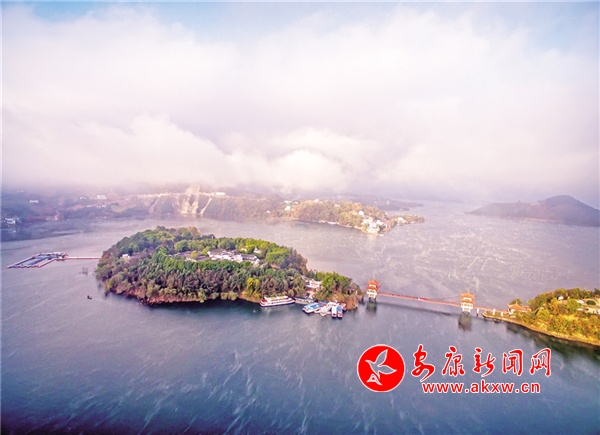 初冬的清晨,瀛湖風(fēng)姿綽約、曼妙無(wú)比。起初湖水像是受熱不均的沸水,這里一點(diǎn),那里一塊冒著熱騰騰的青煙,如絲如縷,在水面上輕盈地飄動(dòng)、游離、撕扯,如慵懶自在的白云,把天空、湖水襯托得更藍(lán)。漸漸地,煙嵐越來(lái)越濃,越來(lái)越多,像化不開的乳汁,最后整個(gè)湖面煙波浩渺,小船和遠(yuǎn)山若隱若現(xiàn),似人間童話仙境。這樣的山圍繞著這樣的水,這樣的水倒映著這樣的山,再加上湖中帆影點(diǎn)點(diǎn),白鷺行行,小島林立,魚群結(jié)對(duì),有種人在畫中游的感覺。深冬,總會(huì)落一兩場(chǎng)雪。那雪,極富層次。山下,素雪輕薄覆蓋;山上銀裝素裹,玉潔冰清。湖水則咕嘟咕嘟冒著熱氣,白綠相配,分外醒目,似丹青妙手繪制的山水畫,又似巧手繡娘精繡的刺繡,美輪美奐,惹人愛憐。