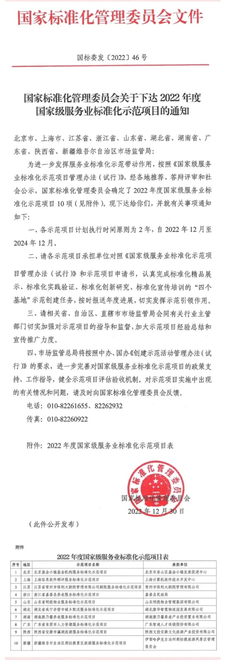2022年12月30日,國家標準化管理委員會下達全國十個國家級服務業(yè)標準化示范項目,“陜西省安康市瀛湖旅游標準化示范項目”,經(jīng)過資審、文審、選拔、答辯、公示等程序,從全國一百余家單位中脫穎而出、光榮上榜,成為陜西省第一個國家級旅游標準化示范項目。