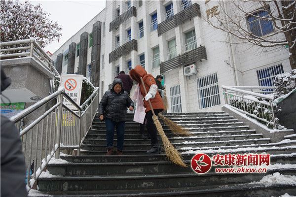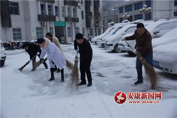 安康新聞網(wǎng)訊(通訊員 杜波兒 楊云波)2018年 1月4日,迎來(lái)了新年的第一場(chǎng)大雪,為百姓們帶來(lái)美麗雪景的同時(shí)也給來(lái)院就診的患者帶來(lái)諸多不便。當(dāng)你在賞雪景,曬美照時(shí),鎮(zhèn)坪縣醫(yī)院院辦七點(diǎn)多就來(lái)到醫(yī)院,組織行政、后勤醫(yī)護(hù)人員掃雪除冰,全力保障患者安全就醫(yī),確保醫(yī)療工作的正常運(yùn)轉(zhuǎn)。