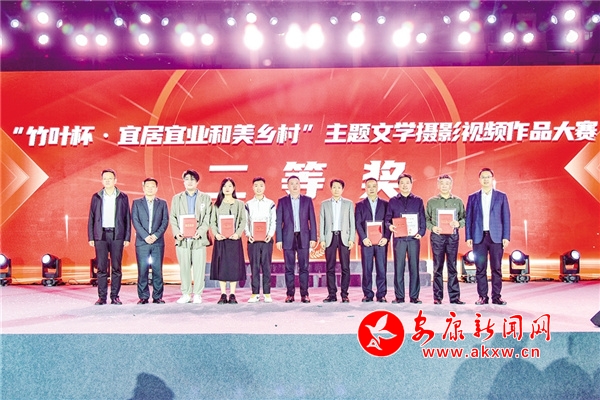 頒獎(jiǎng)環(huán)節(jié),令人矚目的“竹葉杯·宜居宜業(yè)和美鄉(xiāng)村”主題文學(xué)攝影視頻作品大賽一等獎(jiǎng)、二等獎(jiǎng)、三等獎(jiǎng)等重磅獎(jiǎng)項(xiàng)一一揭曉,將晚會(huì)推向高潮。頒獎(jiǎng)嘉賓為大賽獲獎(jiǎng)的3個(gè)一等獎(jiǎng)作品、6個(gè)二等獎(jiǎng)作品、9個(gè)三等獎(jiǎng)作品及29個(gè)優(yōu)秀作品獲獎(jiǎng)?wù)哳C發(fā)了榮譽(yù)證書及獎(jiǎng)品。獲得此次視頻作品一等獎(jiǎng)的激流文化傳媒公司陳祖奎說:“這次大賽給我們提供了宣傳鎮(zhèn)坪、展示鎮(zhèn)坪的平臺(tái),也為外界增添了一扇發(fā)現(xiàn)鎮(zhèn)坪、了解鎮(zhèn)坪的窗口。不到鎮(zhèn)坪看看,不知鎮(zhèn)坪的美麗。希望《山水里的鎮(zhèn)坪》能為鎮(zhèn)坪的宣傳拋磚引玉,涌現(xiàn)更多更好的作品,在宣傳美麗鎮(zhèn)坪這條道路上越走越遠(yuǎn),讓我們一起留住美麗鄉(xiāng)愁,奔向美好生活。 ”