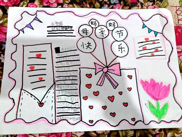活動中,教師們依據(jù)小學(xué)生的身心特點(diǎn)和認(rèn)知水平,因地、因?qū)嵉脑O(shè)計了多種形式的活動教育和引導(dǎo)學(xué)生感謝母親、感恩母愛。在美術(shù)老師的指導(dǎo)和幫助下,學(xué)生們運(yùn)用畫筆將自己對母親的愛呈現(xiàn)在紙上、用相得益彰的圖文表達(dá)了對母親的感恩;在《思政課》老師啟發(fā)下,學(xué)生們在5月14日(母親節(jié))當(dāng)日,為母親洗腳、用自己稚嫩的雙手做實(shí)際行動表達(dá)了自己對母親的感恩;主題班會上,班主任老師還為學(xué)生講解了多個“孝親敬長”典故、案例。