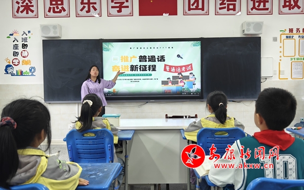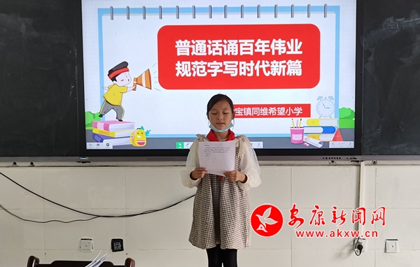 在課間,學校師生以具體形象、通俗易懂的語言,詮釋了自己對普通話和規(guī)范簡化字的認識。在主題班會上,各班借助PPT、宣教片等形式向學生科普了普通話的由來、普通話水平等級、不規(guī)范簡化字、《通用語言文字法》的解讀、文學名著中的偏僻字音等知識,號召大家“講普通話,寫規(guī)范字”,積極主動地弘揚民族語言文化。