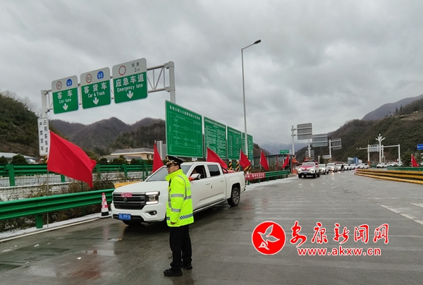 本網(wǎng)訊(楊明海 張旭)2月21日,因降雪結(jié)冰,安康境內(nèi)多條高速臨時性交通管制。在安(康)來(鳳)高速平(利)鎮(zhèn)(坪)段鐘寶收費站外廣場,一支迎親車隊被滯留,陜西交控安平分公司鎮(zhèn)坪管理所緊急相助,為新人打通“幸福路”。