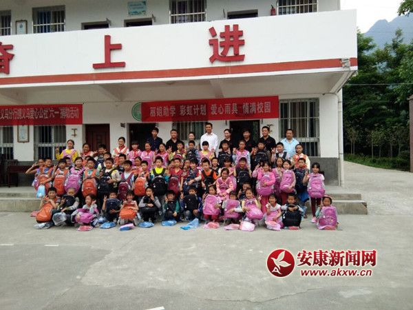 安康新聞網(wǎng)(通訊員 鐘定軍 劉成軍)陽(yáng)光溫暖,風(fēng)中飄香。5月31日下午,紫陽(yáng)縣麗姐助學(xué)志愿者攜中國(guó)建設(shè)銀行義烏分行愛(ài)心公社在副縣長(zhǎng)張麟的帶領(lǐng)下來(lái)到高橋鎮(zhèn)龍?zhí)缎W(xué),用行動(dòng)播撒愛(ài)的甘露:麗姐助學(xué)及義烏愛(ài)心公社為該校63名貧困學(xué)生傾注愛(ài)心,由麗姐助學(xué)為孩子們籌資送來(lái)了63套雨具(雨衣、雨鞋及鞋套);義烏愛(ài)心公社開(kāi)展“愛(ài)心書包漂流”活動(dòng)為孩子們買來(lái)63個(gè)書包,并且每個(gè)書包里面都配備有各種文具。孩子們依次伸出一雙雙稚嫩的小手,接過(guò)雨具和書包,此時(shí)每個(gè)孩子的臉上都綻放出快樂(lè)的笑容,校園里洋溢著濃濃的愛(ài)意。