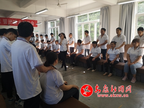 圖為紫陽縣勞動就業(yè)技能培訓(xùn)中心內(nèi)的按摩課