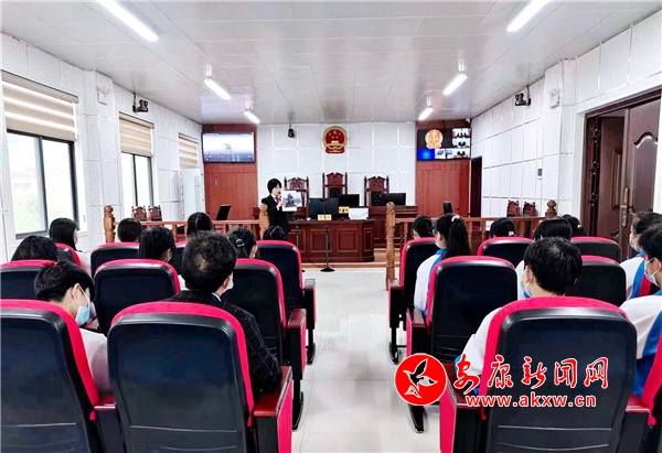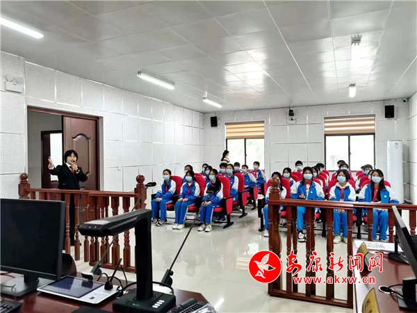 本網(wǎng)訊(通訊員 唐燕)5月25日,新搬遷的蒿坪中心人民法庭迎來了第一批來參觀的“小客人”——蒿坪中學(xué)初二年級學(xué)生,他們著裝整齊,朝氣蓬勃,在蒿坪法庭庭長的引導(dǎo)下,參觀了訴訟服務(wù)中心、審判庭等場所,法官細(xì)致介紹了審判庭的設(shè)置、法徽與法袍的含義、法槌的來歷,以及現(xiàn)有的科技設(shè)備,結(jié)合具體案例講解了《民法典》中與未成年切身相關(guān)的法律規(guī)定,同學(xué)們?nèi)探蚪蛴形兜芈犞,時不時用筆詳細(xì)地做著筆記,對審判庭內(nèi)的一切既興奮又好奇。