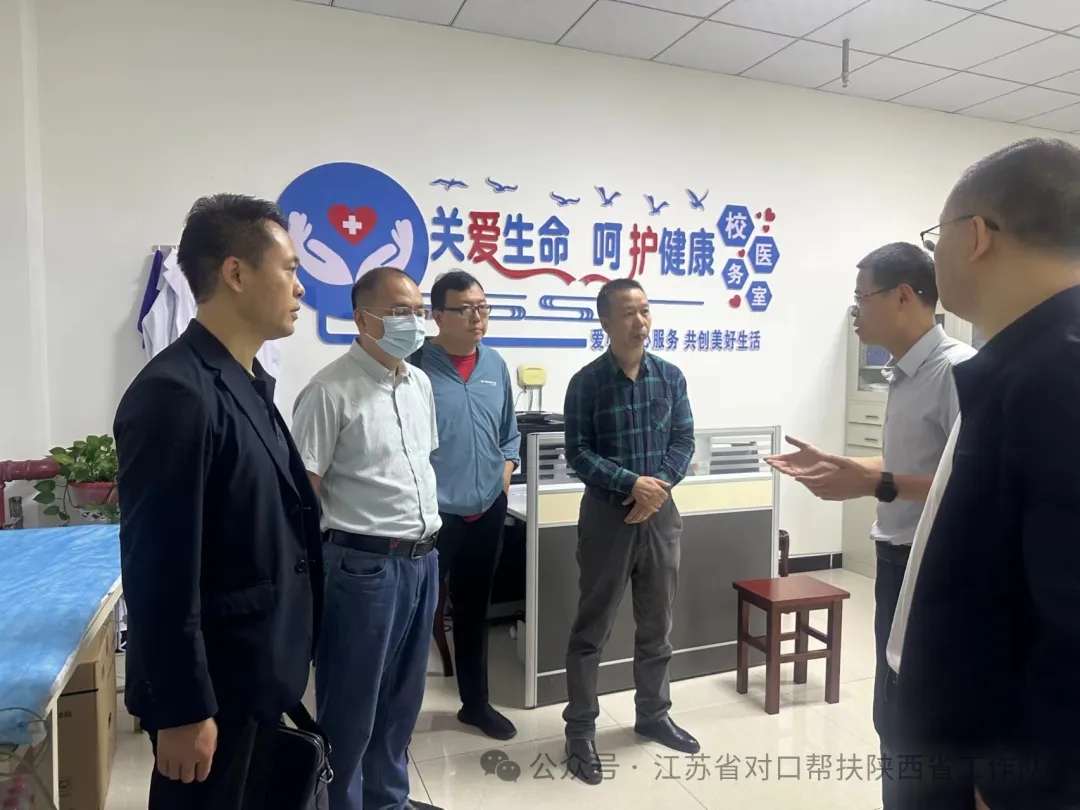 會(huì)后,專家團(tuán)隊(duì)先后前往紫陽(yáng)縣人民醫(yī)院功能科及紫陽(yáng)中學(xué)校醫(yī)室實(shí)地考察幫扶項(xiàng)目建設(shè)情況。紫陽(yáng)中學(xué)校長(zhǎng),蘇陜“組團(tuán)式”幫扶紫陽(yáng)中學(xué)團(tuán)隊(duì)隊(duì)長(zhǎng)馮小強(qiáng)介紹了紫陽(yáng)的特色幫扶品牌項(xiàng)目“醫(yī)教聯(lián)盟”,從兩個(gè)幫扶團(tuán)隊(duì)合作進(jìn)而發(fā)展成為兩個(gè)受援單位的合作,形成互相促進(jìn),互利共生的良好局面。為“組團(tuán)式”幫扶工作在陜西的開(kāi)展作出了有益的嘗試。