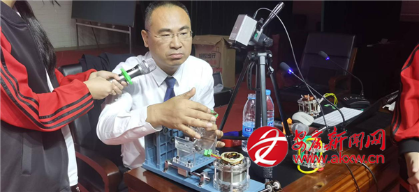 講座的亮點之一是關(guān)于“三相交流鼠籠式異步電動機”的現(xiàn)場實驗展示。嵇教授首先通俗易懂地闡釋了該類型電動機作為現(xiàn)代工業(yè)核心的重要地位及基本原理,隨后現(xiàn)場演示實驗過程,逐步解析其內(nèi)部結(jié)構(gòu)、旋轉(zhuǎn)磁場的形成機制,以及“鼠籠”轉(zhuǎn)子實現(xiàn)電能與機械能高效轉(zhuǎn)換的原理。抽象難懂的電磁學(xué)知識,在直觀的演示與生動的講解中變得清晰可感。嵇教授還引導(dǎo)同學(xué)們思考該項技術(shù)在各行各業(yè)的廣泛應(yīng)用,切身感受科技對社會發(fā)展的深遠影響。這一環(huán)節(jié)有效激發(fā)了同學(xué)們對工程技術(shù)的興趣與對科學(xué)原理的探索熱情。