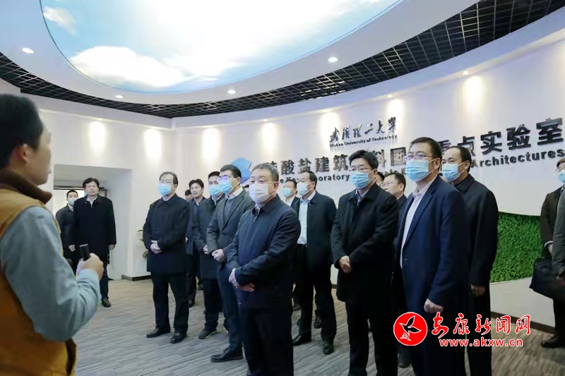 武文罡一行在武漢理工大學(xué)硅酸鹽建筑材料國(guó)家重點(diǎn)實(shí)驗(yàn)室參觀考察