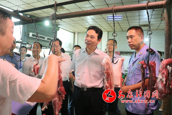 在南門農(nóng)貿(mào)市場(chǎng),趙俊民實(shí)地查看了放心豬肉銷售點(diǎn)供應(yīng)情況。他強(qiáng)調(diào),豬肉是群眾日常生活的基本消費(fèi)品,其生產(chǎn)供應(yīng)情況與群眾生活息息相關(guān),各級(jí)各有關(guān)部門要圍繞穩(wěn)定生豬生產(chǎn)、保障市場(chǎng)供應(yīng)做好工作,確保豬肉質(zhì)量安全、價(jià)格穩(wěn)定。
