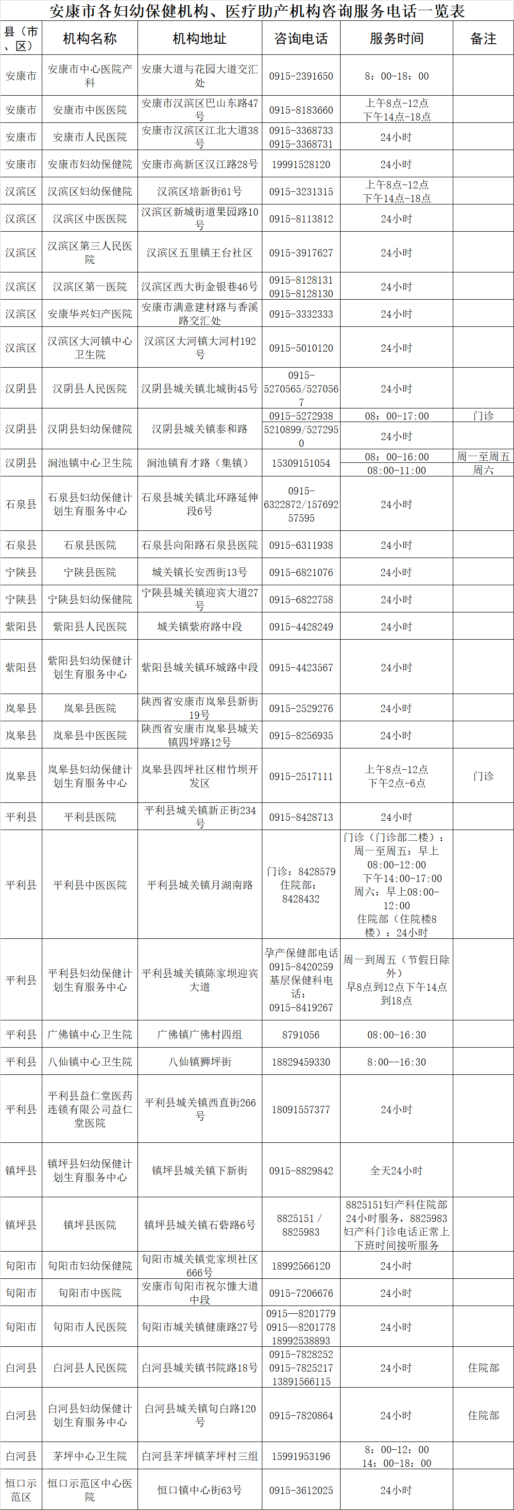 安康市各婦幼保健機(jī)構(gòu)、醫(yī)療助產(chǎn)HW6安康新聞網(wǎng) 機(jī)構(gòu)咨詢服務(wù)電話HW6安康新聞網(wǎng)