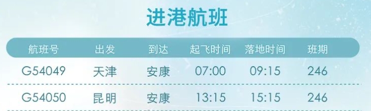 12月26日起,安康富強(qiáng)機(jī)場(chǎng)新增“安康=昆明”“安康=天津”航線。具體航線航班如圖:yev安康新聞網(wǎng)