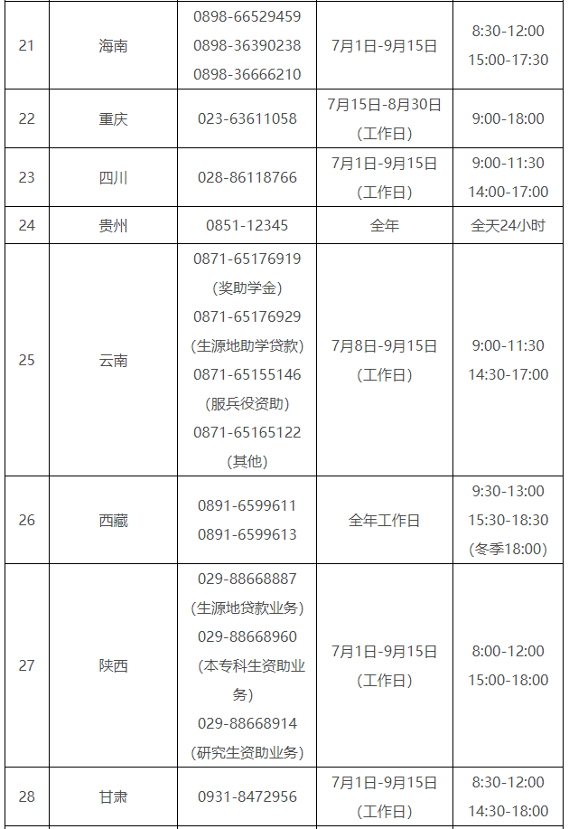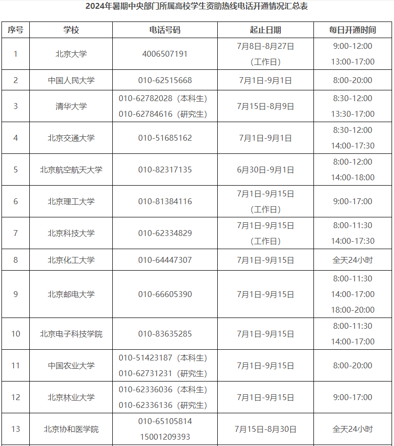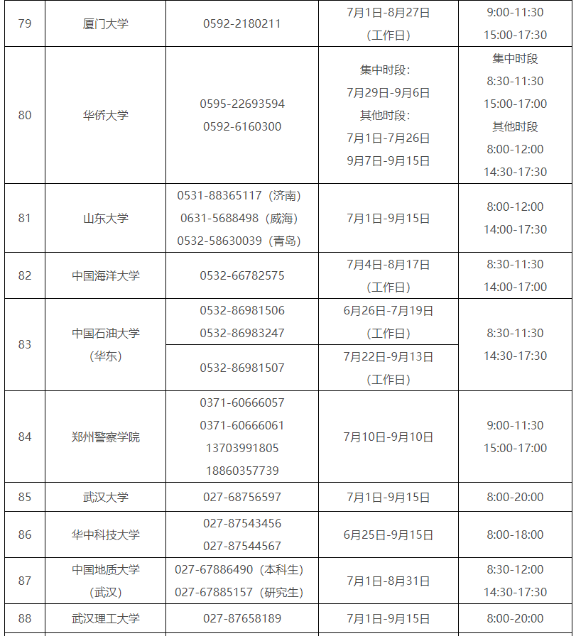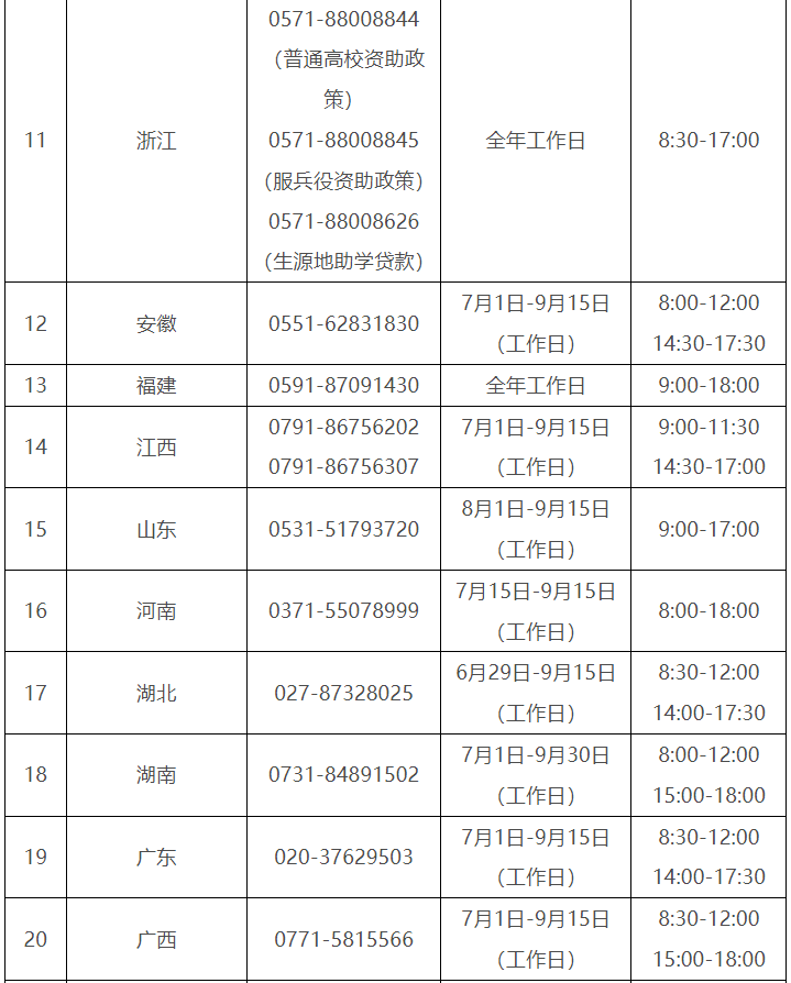各省(自治區(qū)、直轄市)和中央部門所屬高校同步開(kāi)通了熱線電話,電話號(hào)碼與開(kāi)通時(shí)間可查看匯總表。