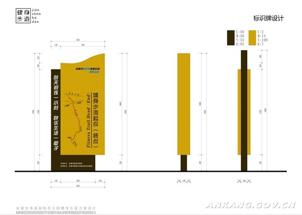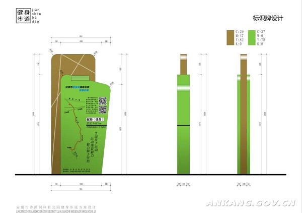 鋪設(shè)環(huán)保透氣型塑膠顆粒步道面層、道路劃線和面層標(biāo)識(shí)、安裝起終點(diǎn)告示牌等。