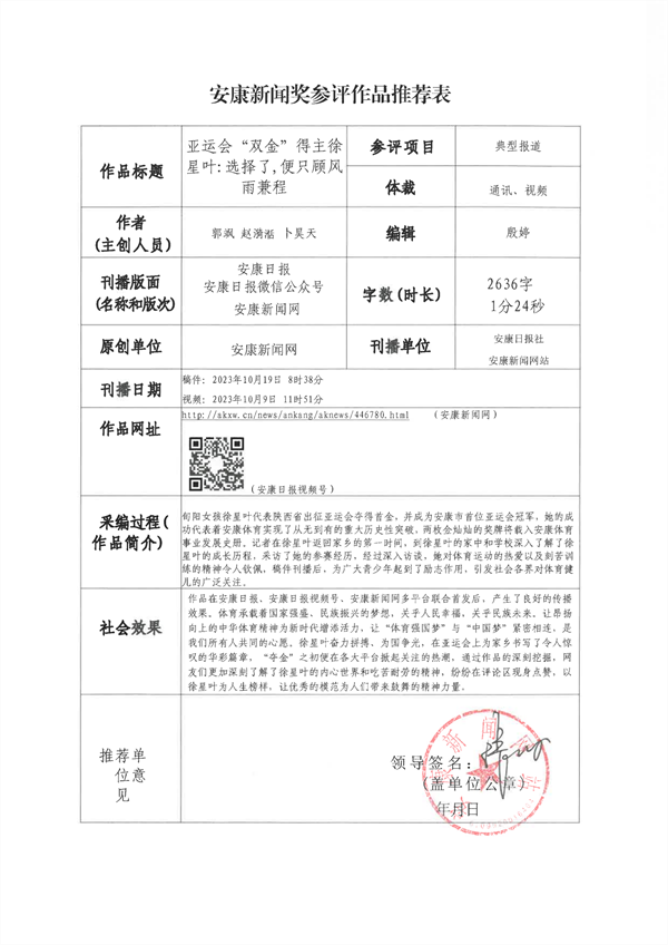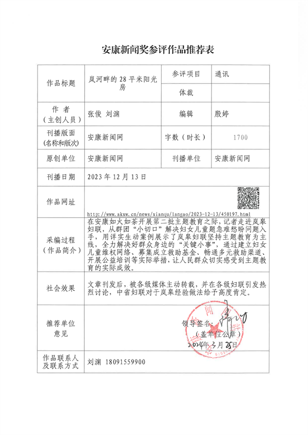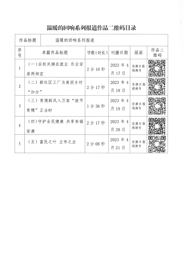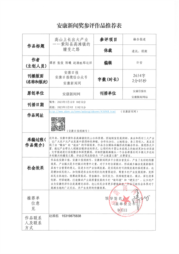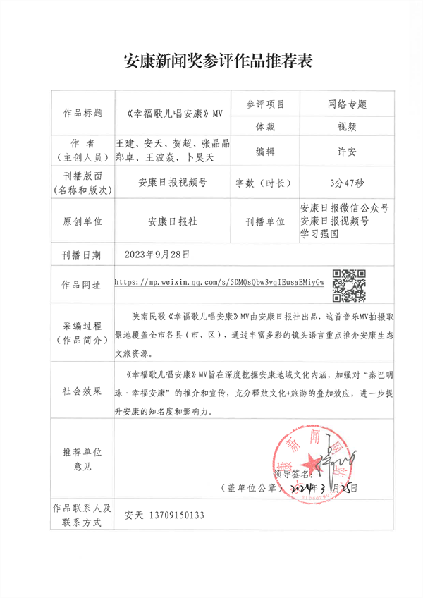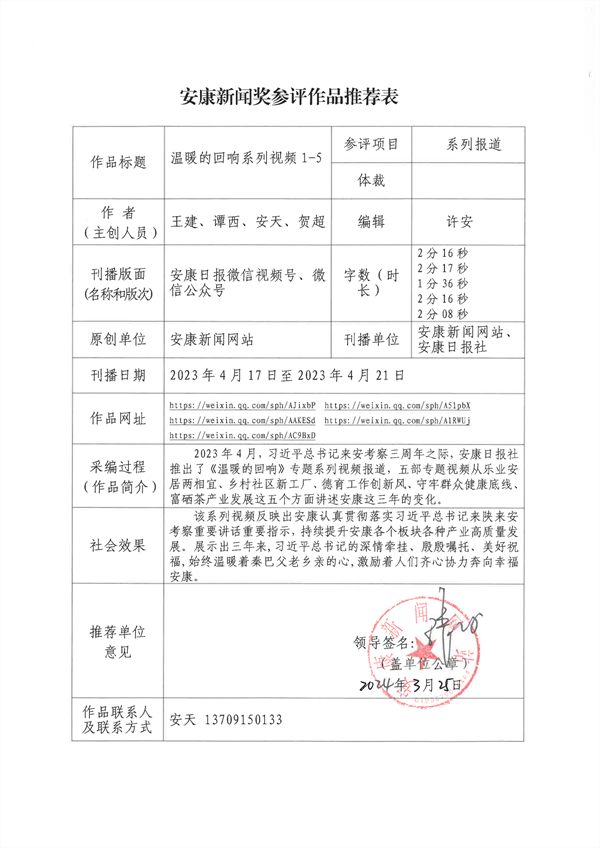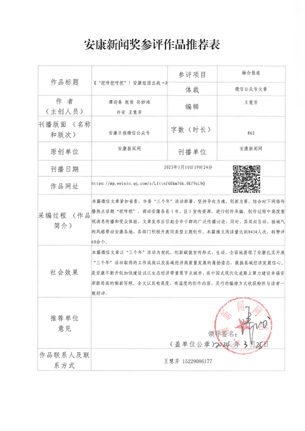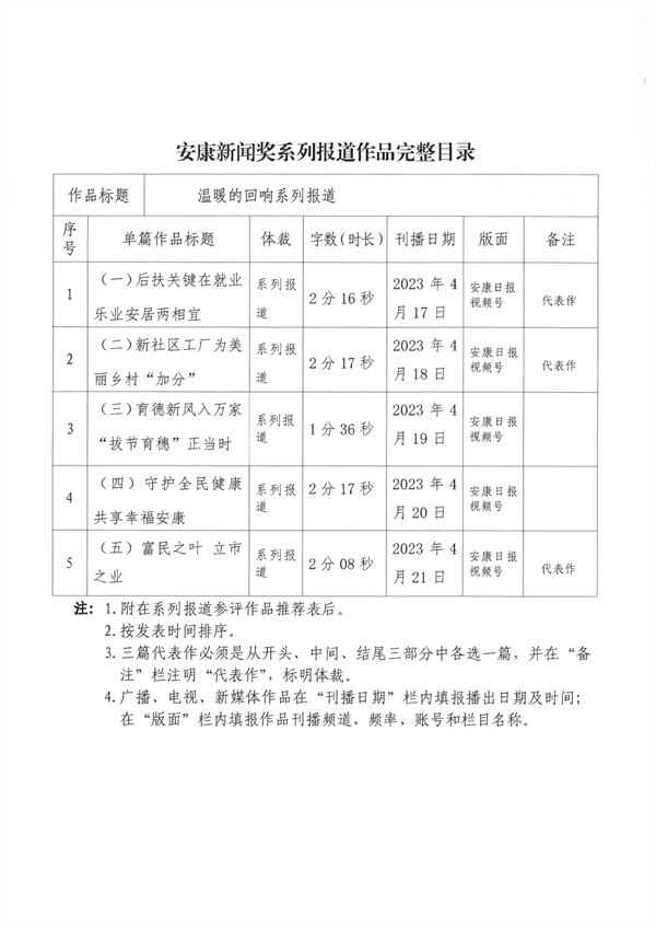 經過編委會推薦、社黨委研究決定,擬推薦以下13件新聞作品參評2023年度“安康新聞獎”。公示時間從2024年3月25日至2024年3月29日,公示期為5個工作日。如有不同意見,請向安康日報社機關紀委、新聞管理部反映。nyB安康新聞網(wǎng)