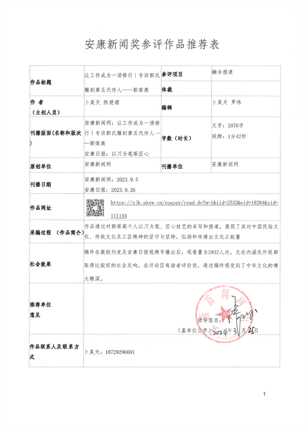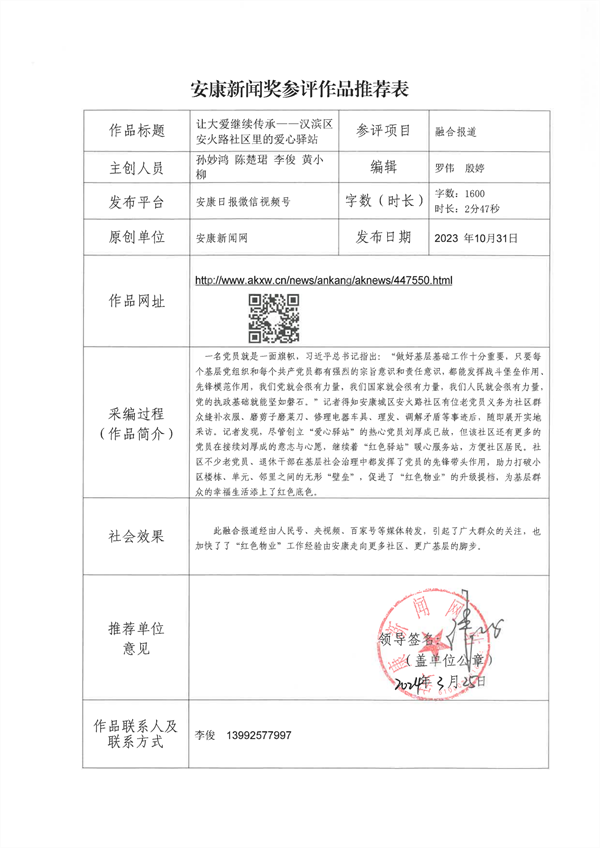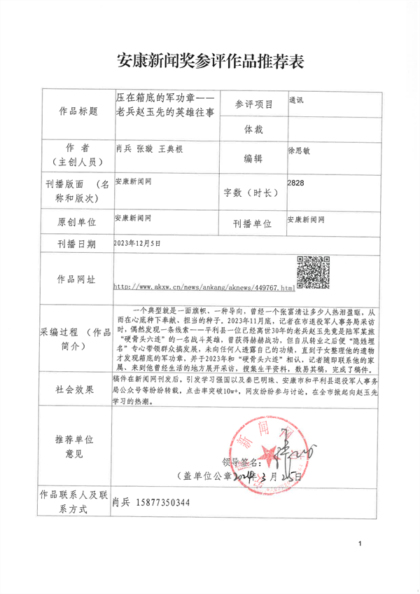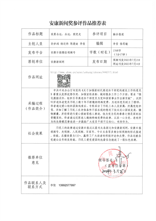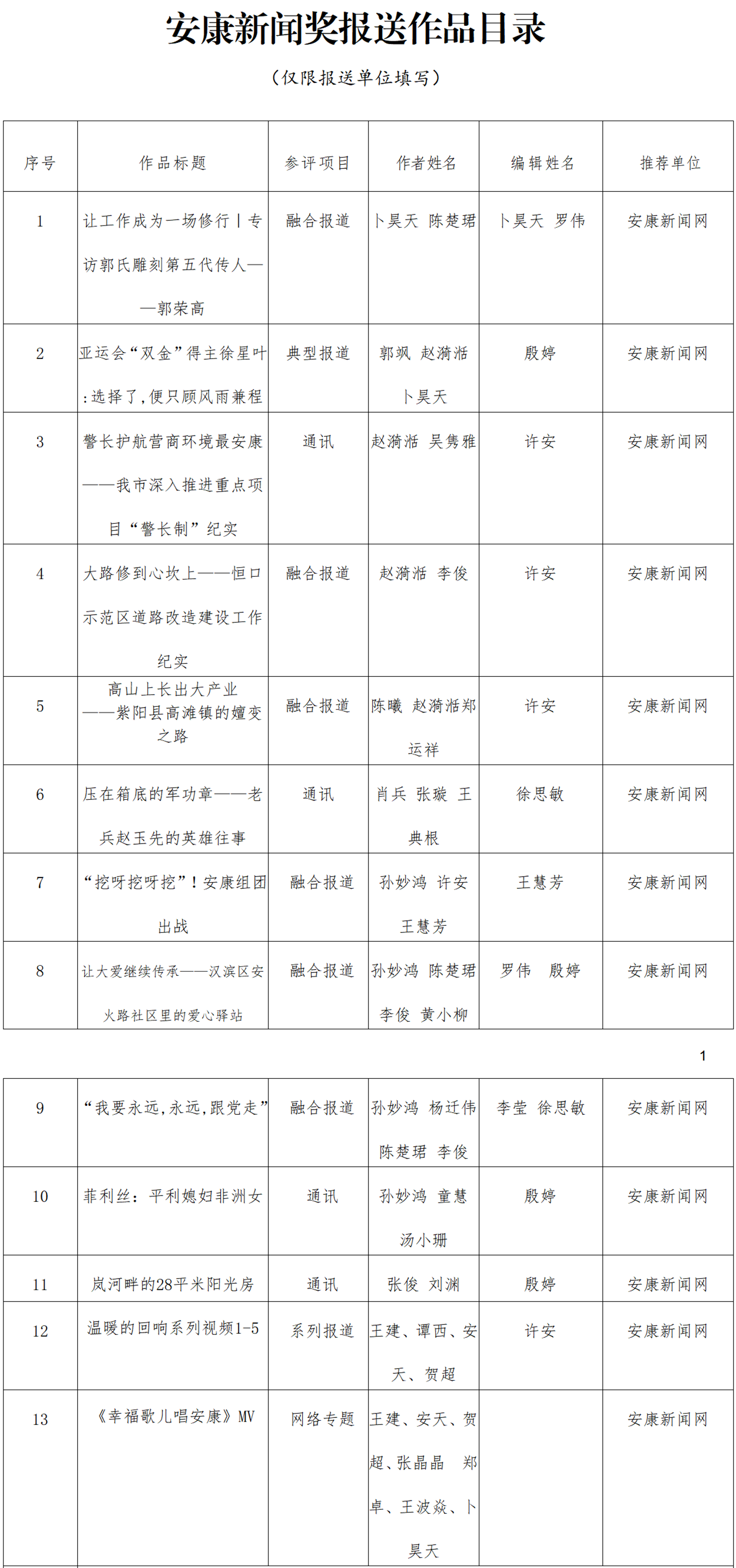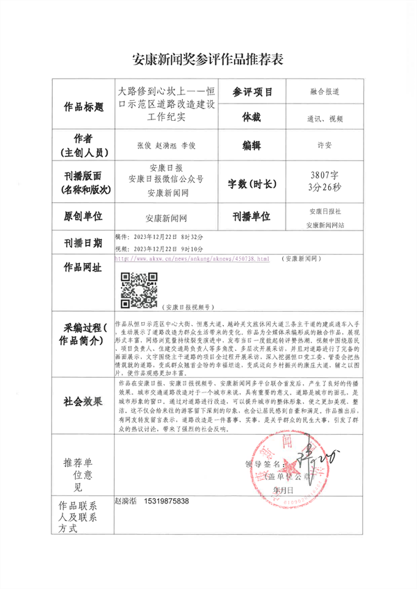 經過編委會推薦、社黨委研究決定,擬推薦以下13件新聞作品參評2023年度“安康新聞獎”。公示時間從2024年3月25日至2024年3月29日,公示期為5個工作日。如有不同意見,請向安康日報社機關紀委、新聞管理部反映。nyB安康新聞網(wǎng)