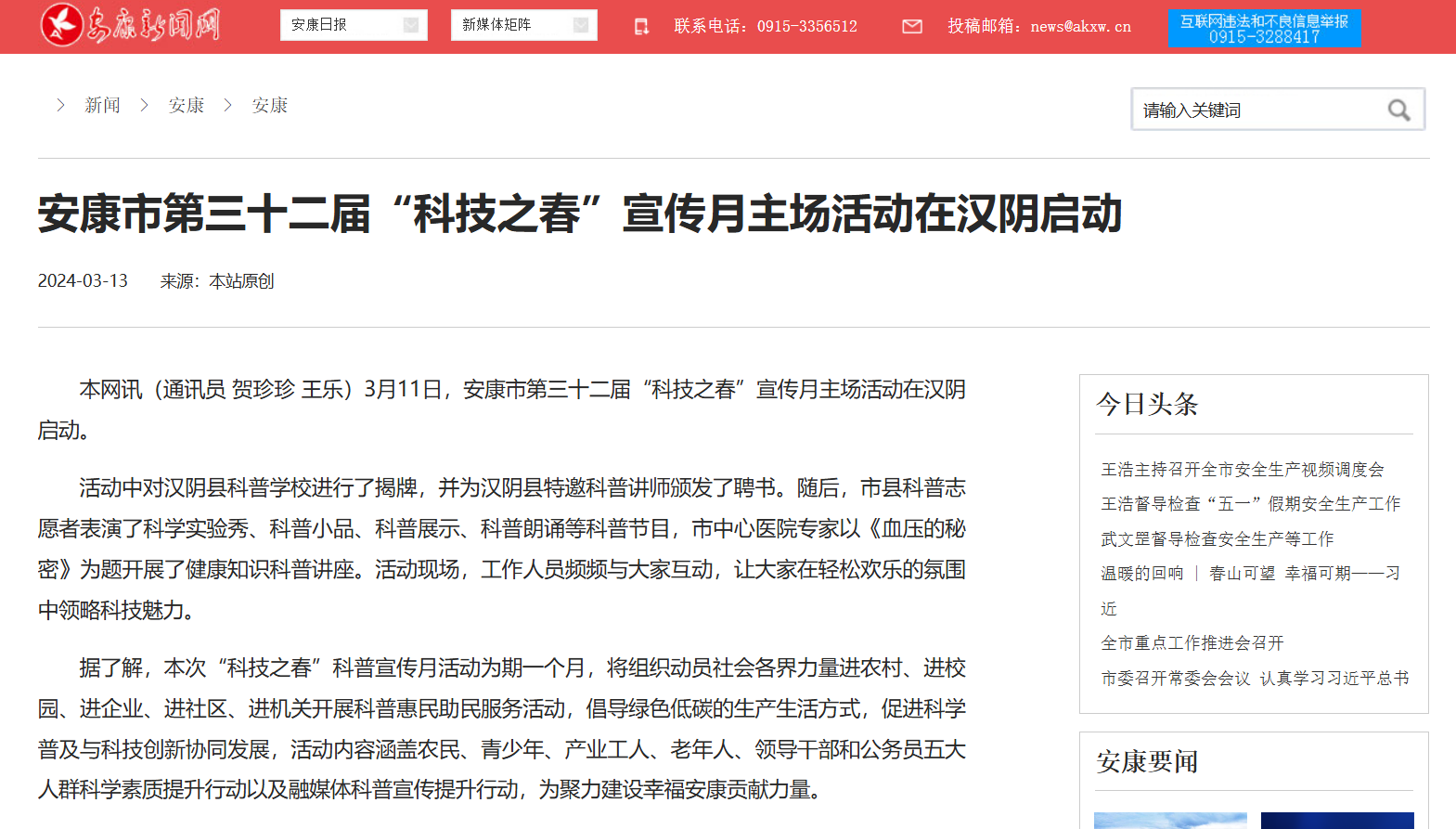 《安康市第三十二屆“科技之春”宣傳月主場活動在漢陰啟動》(2024-03-13發(fā)布)