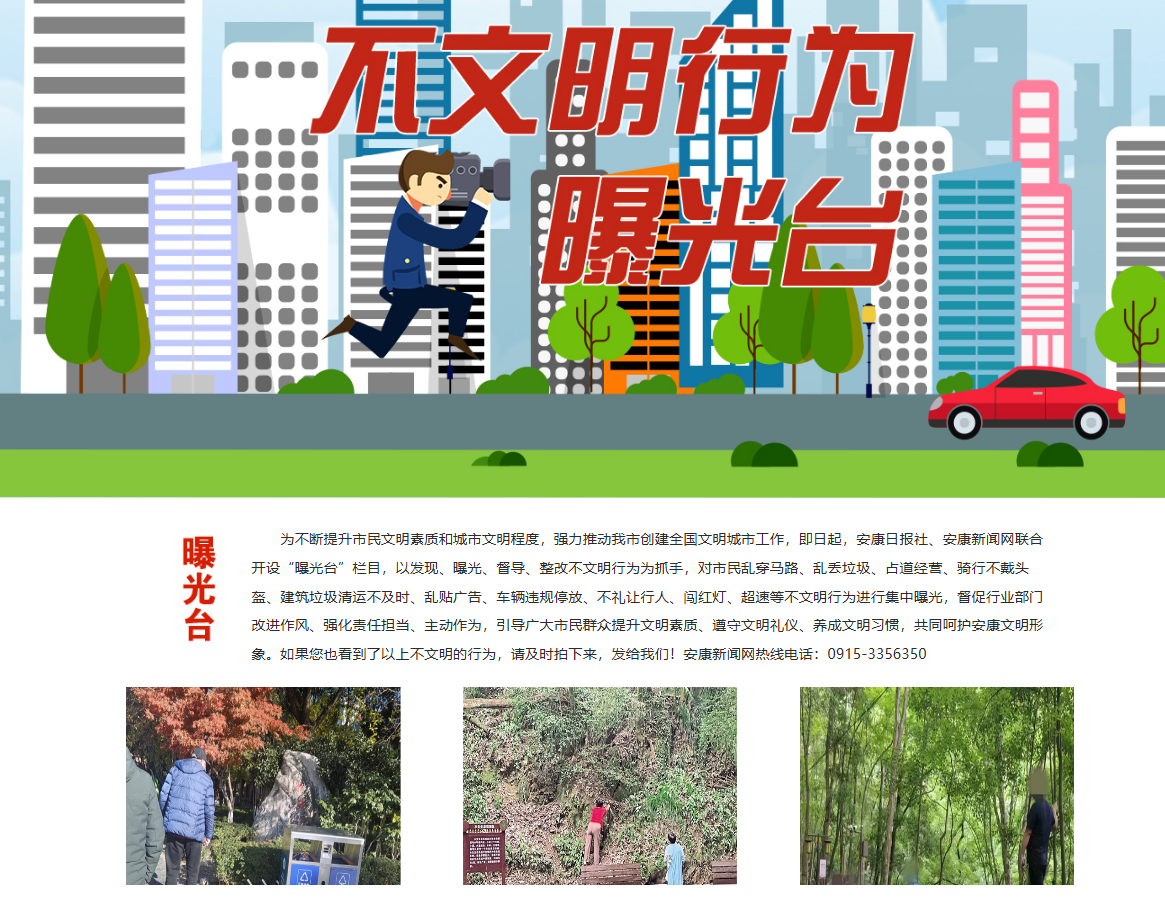 安康新聞網(wǎng)繼續(xù)充分發(fā)揮輿情監(jiān)測和輿論監(jiān)督作用,以高度負責的態(tài)度,及時監(jiān)測上報重大輿情信息。開設《不文明行為曝光臺》輿論監(jiān)督專欄,集中曝光身邊的不文明現(xiàn)象、行為,發(fā)布消息報道19篇,引導市民群眾自覺規(guī)范文明行為,主動融入城市文明創(chuàng)建熱潮,為提升市民文明素質和城市文明程度貢獻媒體力量,體現(xiàn)地方黨媒的責任與擔當。