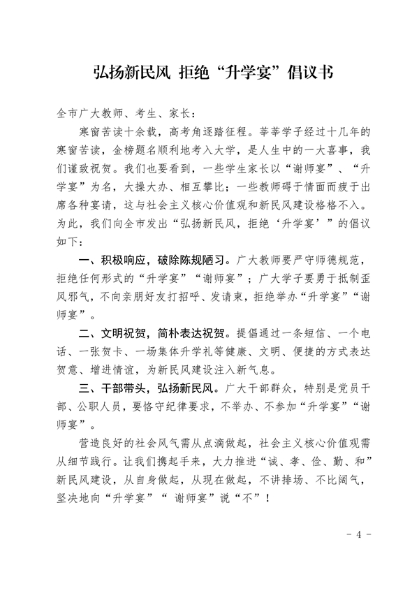 關(guān)于踐行新民風(fēng) 不辦“升學(xué)宴”的通知