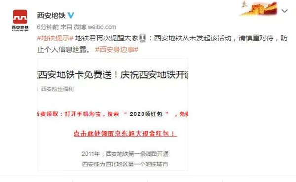 在此,地鐵君又雙叒叕一次提醒大家:西安地鐵從未發(fā)起該活動(dòng),請(qǐng)慎重對(duì)待,防止個(gè)人信息泄露。