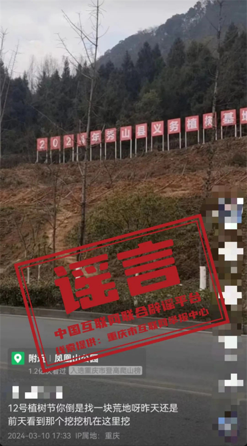 謠言:重慶市秀山縣鳳凰山公園把原有樹木挖了來(lái)辦植樹節(jié)?