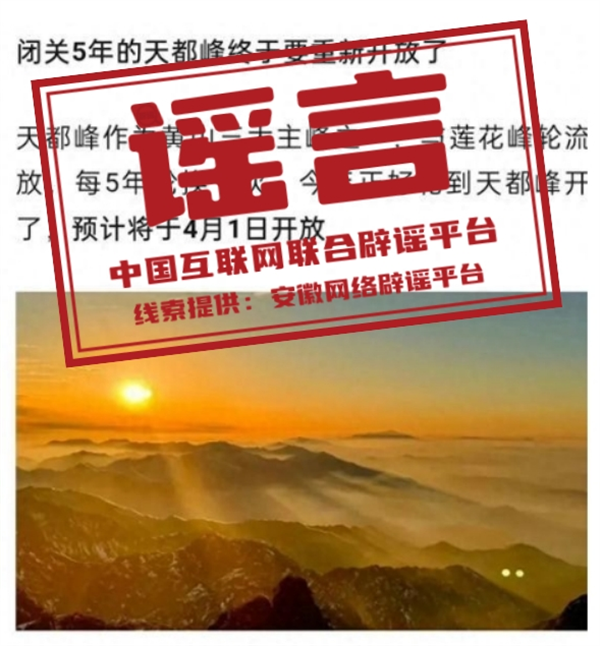 謠言:黃山天都峰4月1日結(jié)束輪休對(duì)外開放?