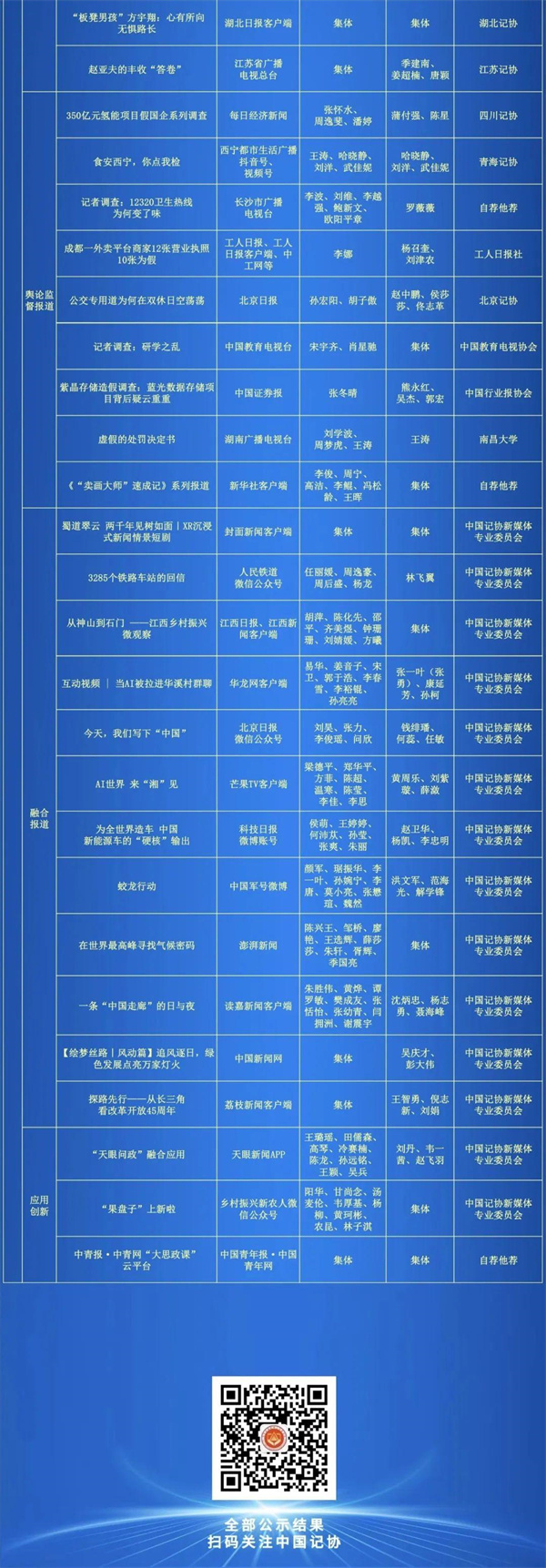 公示截止日期為2024年11月3日。在此期間,社會各界可通過電話、傳真、信函或電子郵件等方式發(fā)表意見。中國記協評獎辦公室將認真受理,按照《評選辦法》規(guī)定對有關舉報進行核查,并提出處理意見報評委會主任會議決定。
