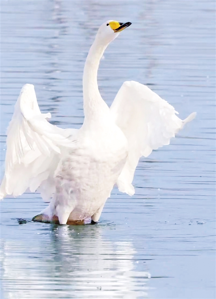 成鳥遍體雪白,僅頭頂至枕略沾淡棕黃色。雌雄同色,雌性體型略小。虹膜棕色,嘴黑灰色,上嘴基部兩側(cè)黃斑向前伸近鼻孔,蹼、爪等均為黑色。幼鳥全身淡灰褐色,嘴基粉紅色,嘴端黑色。小天鵝并非幼年的天鵝,其體型比大天鵝小,脖子更短,嘴上的黃色區(qū)域較少。(來源:安康市林學(xué)會)3Kr安康新聞網(wǎng)