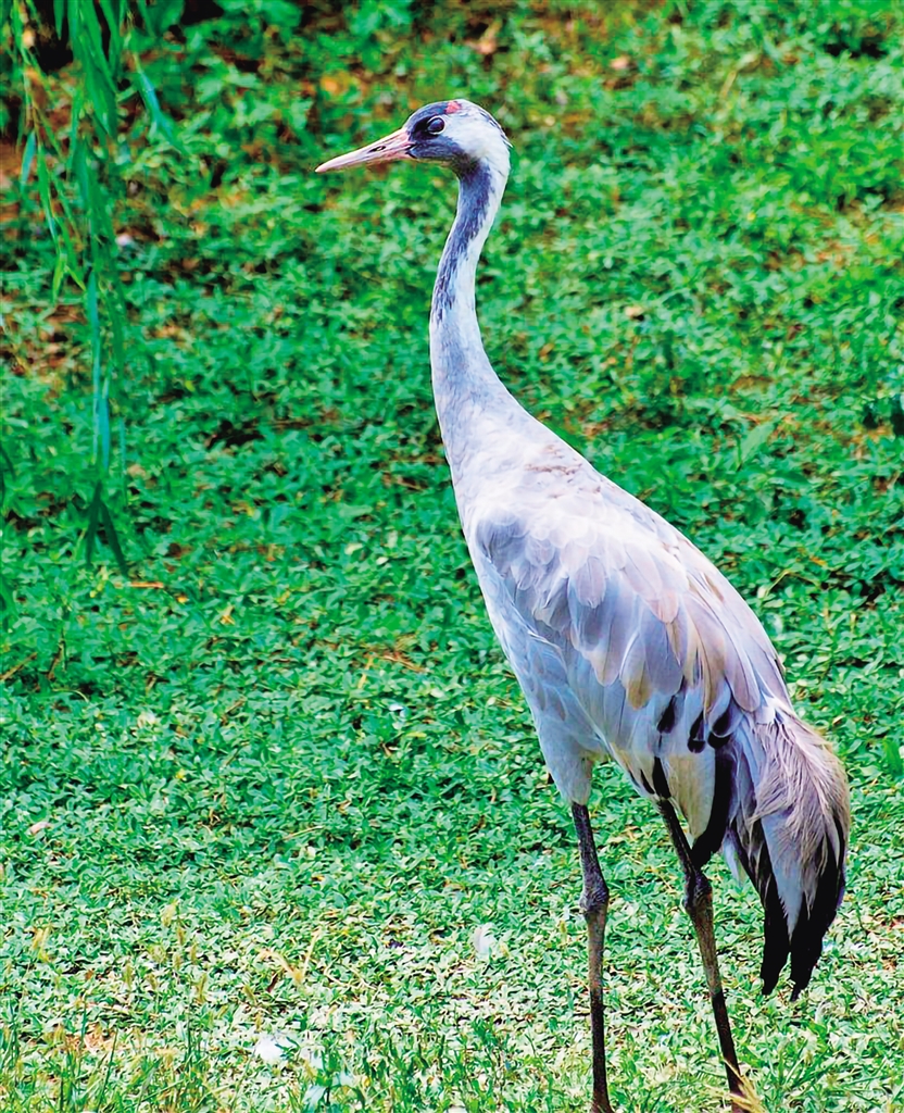 別名千歲鶴、玄鶴、番薯鶴、普通鶴、元鶴。通體羽色幾乎全為灰色;前額和眼先黑色,頭頂裸區(qū)部分呈朱紅色,喉、前頸和后頸灰黑色;自眼后有一道寬的白色條紋伸至頸背;眼虹膜紅褐色或深紅色;嘴暗綠色,先端顏色略淡;脛、跗跖及趾均為灰黑色。(來源:安康市林學(xué)會)wsM安康新聞網(wǎng)