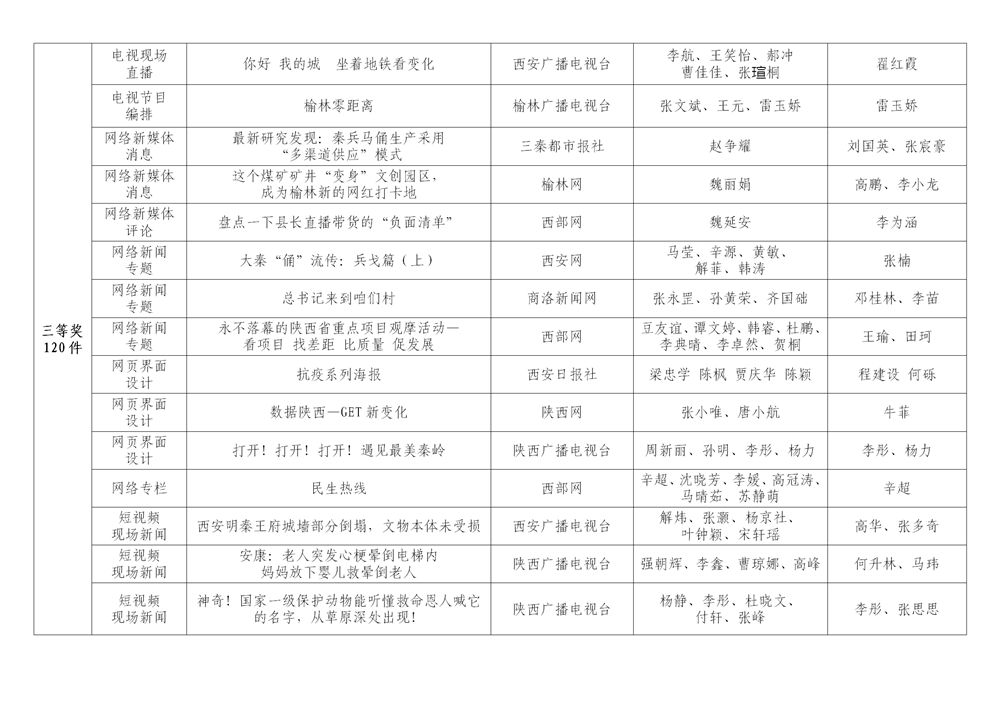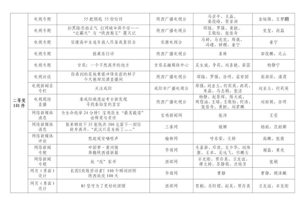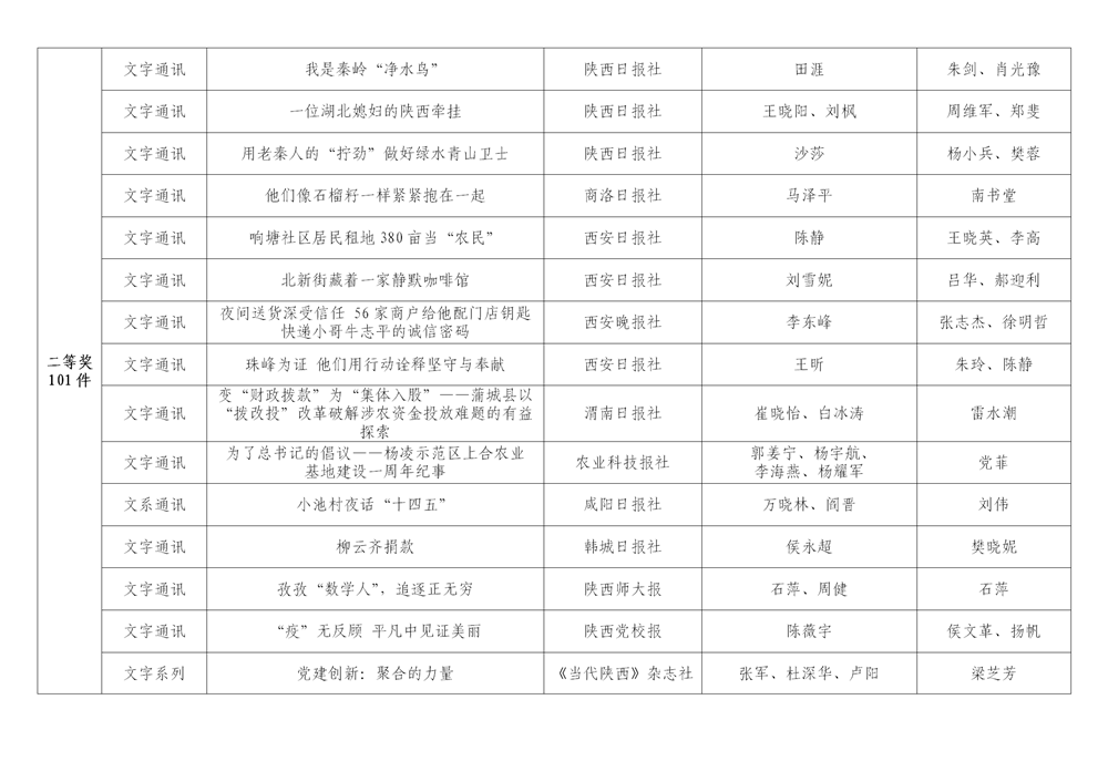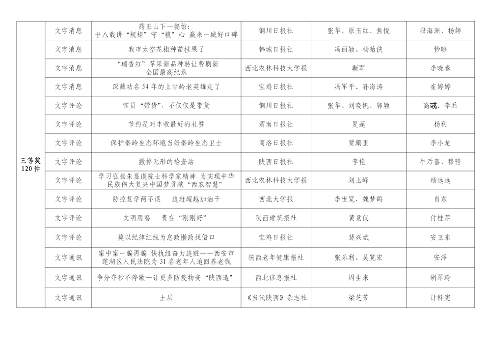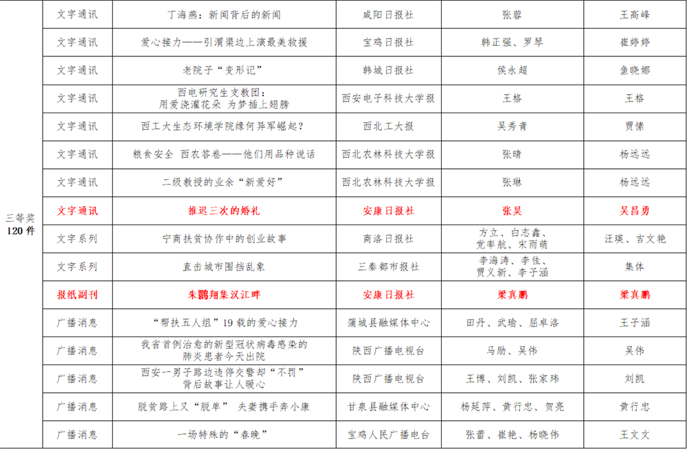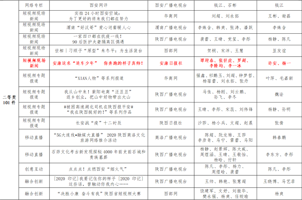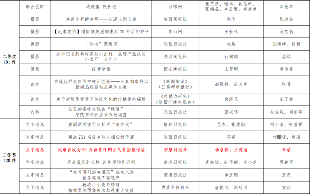 7月6日,陜西省新聞工作者協(xié)會公布了2020年度陜西新聞獎、陜西省優(yōu)秀新聞工作者評選結(jié)果,最終評定2020年度陜西新聞獎獲獎作品281件,其中一等獎作品60件、二等獎作品101件、三等獎作品120件;10件作品獲2020年度陜西新聞獎“中央、省外媒體特別獎”;12名新聞工作者獲得陜西省優(yōu)秀新聞工作者稱號。Ynz安康新聞網(wǎng)