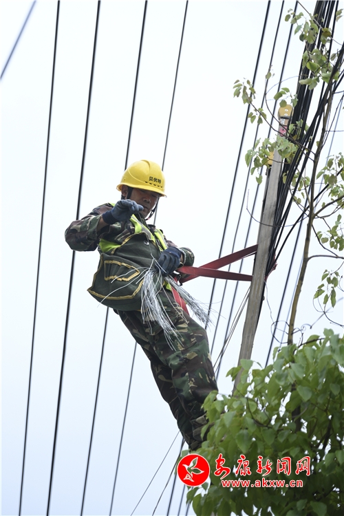 電信通信工作人員在劉家砭地段進行線纜整治