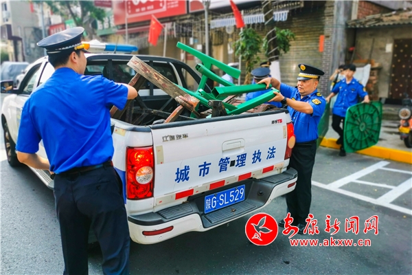 8月2日,漢濱區(qū)老城街道聯(lián)合、城管、公安、交警、市場監(jiān)督管理局等部門在東正街開展亂停亂放、出店經(jīng)營、環(huán)境衛(wèi)生清理整治。(張昊 汪海玉)uXv安康新聞網(wǎng)