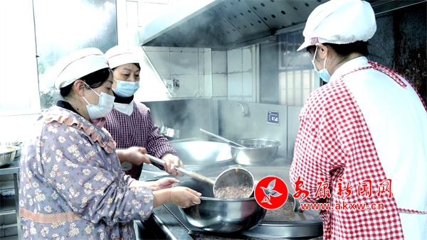 ▲ 1月18日,在寧陜縣中心敬老院,工作人員正在為老人們準(zhǔn)備臘八粥。杜敏 攝
