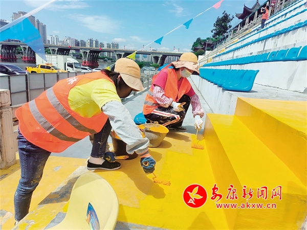 5月30日,工人們在第二十四屆安康漢江龍舟節(jié)主會場進行地面第二輪刷漆。據(jù)市市政園林處現(xiàn)場負(fù)責(zé)人介紹,截至目前,已搭建隔離護欄3715米,建立安檢門及疏散通道18個、蛇形通道8個,制作安裝導(dǎo)視牌10塊,對看臺區(qū)立面刷漆2629平方米,擦拭清洗并固定座椅3794個。錢運立 攝