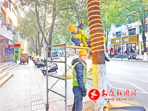 石泉縣為營(yíng)造絢麗多彩的城市夜景,在向陽(yáng)大道兩旁的景觀樹(shù)上安裝LED燈帶。楊勇 攝