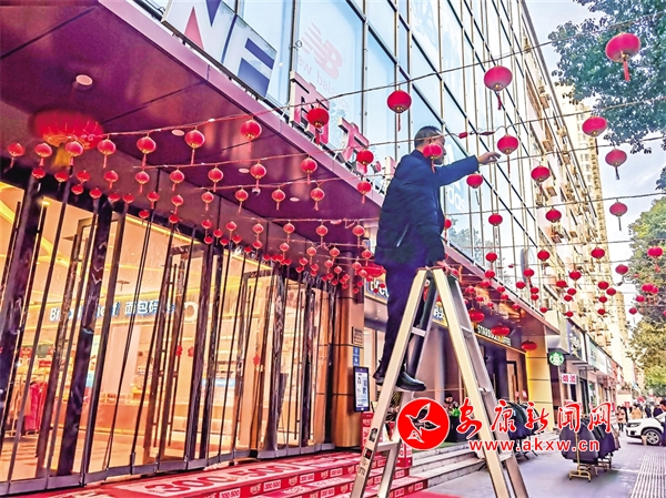 我市中心城區(qū)的商戶(hù)進(jìn)行春節(jié)景觀亮化,讓市民提前感受春節(jié)的氛圍。陳德模攝