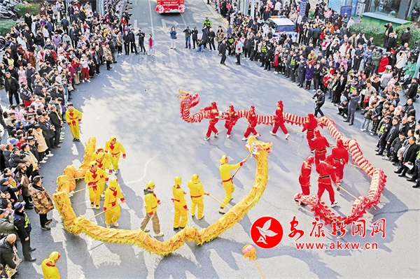 金州廣場的舞龍表演吸引眾多市民朋友駐足。李黎 攝