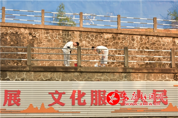 環(huán)衛(wèi)工人清洗垃圾桶、人行道