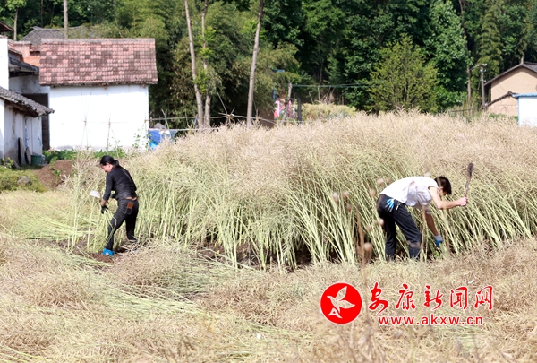 雨過初晴,漢陰月河川道油菜全面成熟,進入收獲階段。同時,該縣農(nóng)業(yè)農(nóng)村局干部深入村戶作好安全生產(chǎn)及禁燒秸稈宣傳工作,確保安全力爭做到顆粒歸倉。(謝小利 攝)J6n安康新聞網(wǎng)