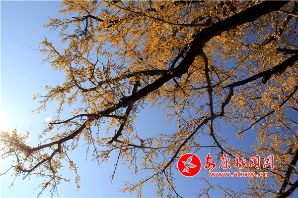 初冬時(shí)節(jié),白河縣構(gòu)朳鎮(zhèn)東坡古銀杏樹(shù)迎來(lái)最佳觀賞期,在陽(yáng)光的照射下,仿佛身披“金甲”。此樹(shù)的樹(shù)齡約1700余年,高約50余米,腰圍近26米,16個(gè)成年人才能合抱住,前來(lái)觀光拍照的游客絡(luò)繹不絕。(通訊員 雷超 孫佳) 3XE安康新聞網(wǎng)