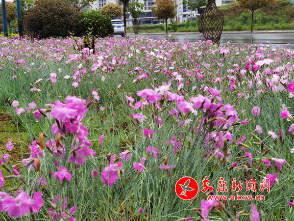 最美人間四月天。4月22日,陰雨綿綿,漢陰縣花月灣迎賓公園步道邊月季花、蝴蝶花、石竹子花綻放,在蒙蒙細(xì)雨的滋潤(rùn)下,格外妖嬈,市民漫步其中,悠然自得。(通訊員 林愛(ài)銘)HLW安康新聞網(wǎng)