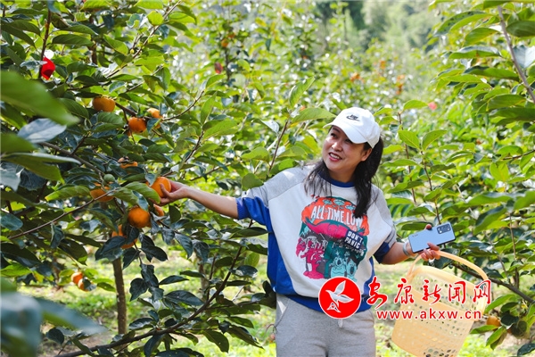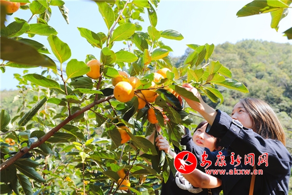10月14日,秋高氣爽,走進(jìn)石泉縣城關(guān)鎮(zhèn)絲銀壩村九組脆甜柿子種植基地,只見一個個色澤紅艷的柿子掛滿枝頭,十分誘人,吸引了不少游客前來采摘品嘗。(通訊員 許兵)yUZ安康新聞網(wǎng)